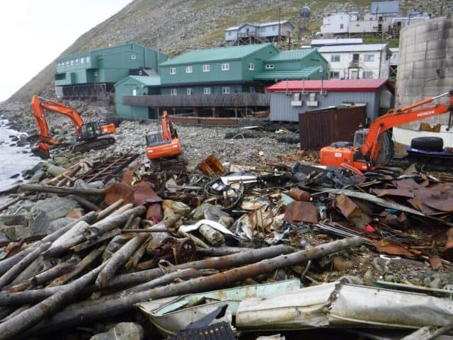 In addition to demolishing the armory, Eagle Eye removed a barge load of garbage, debris and scrap steel for the City of Diomede. Refuse from the island had not been removed since 2009 when a fall storm washed away the barge landing and access to the dump. Some of the items removed by Eagle Eye had been there for more than 20 years.
