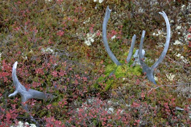 Prior to the 19th-century caribou crash, our people would organize communal hunts, tracking and driving the large herds over the landscape to lakes, river crossings or corrals, where they would dispatch the animals and process the carcasses. Drives were often accomplished through the strategic placement of Inuksuk on ridgelines so the animals would not run upslope to escape. At other sites, fences were constructed from caribou antlers which acted as barriers and channeled the animals into lakes or crossings. Through the ingenious use of the undulating landscape and the resources on hand, our ancestors were able to secure their food and the skins for their clothing.